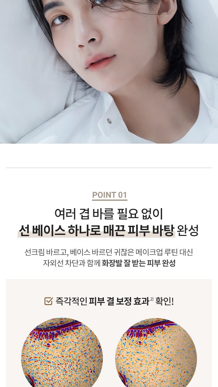 This product is recommended for those who want skin tone correction and pore coverage with just sunscreen, when makeup feels lifted no matter which foundation you use, when applying skincare, sunscreen, and makeup base is bothersome, when the sticky and heavy feeling of sunscreen is frustrating, and when your skin is too warm for the makeup to adhere properly.